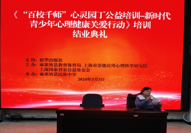 3月2日至3日,由滬文協(xié)作教學(xué)幫扶專家龔志珍同志牽線搭橋引進(jìn)的《“百校千師”心靈園丁公益培訓(xùn)——新時(shí)代青少年心理健康關(guān)愛》培訓(xùn)項(xiàng)目,在麻栗坡縣民族中學(xué)隆重舉行。