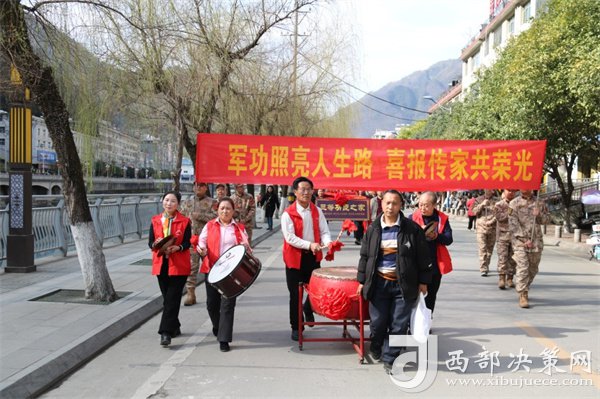 “喜報見證的是軍人至高無上的榮譽,大張旗鼓地開展送喜報活動,決不讓軍人的成績和榮譽只停留在檔案袋里,在更大范圍彰顯‘榮譽感’、擴(kuò)大‘感召圈’,用實際行動使關(guān)心國防、熱愛國防、建設(shè)國防、保衛(wèi)國防成為全社會的思想共識和自覺行動。”鎮(zhèn)巴縣退役軍人事務(wù)局負(fù)責(zé)人鏗鏘有力的發(fā)言贏得了廣大軍民雷鳴般的掌聲。