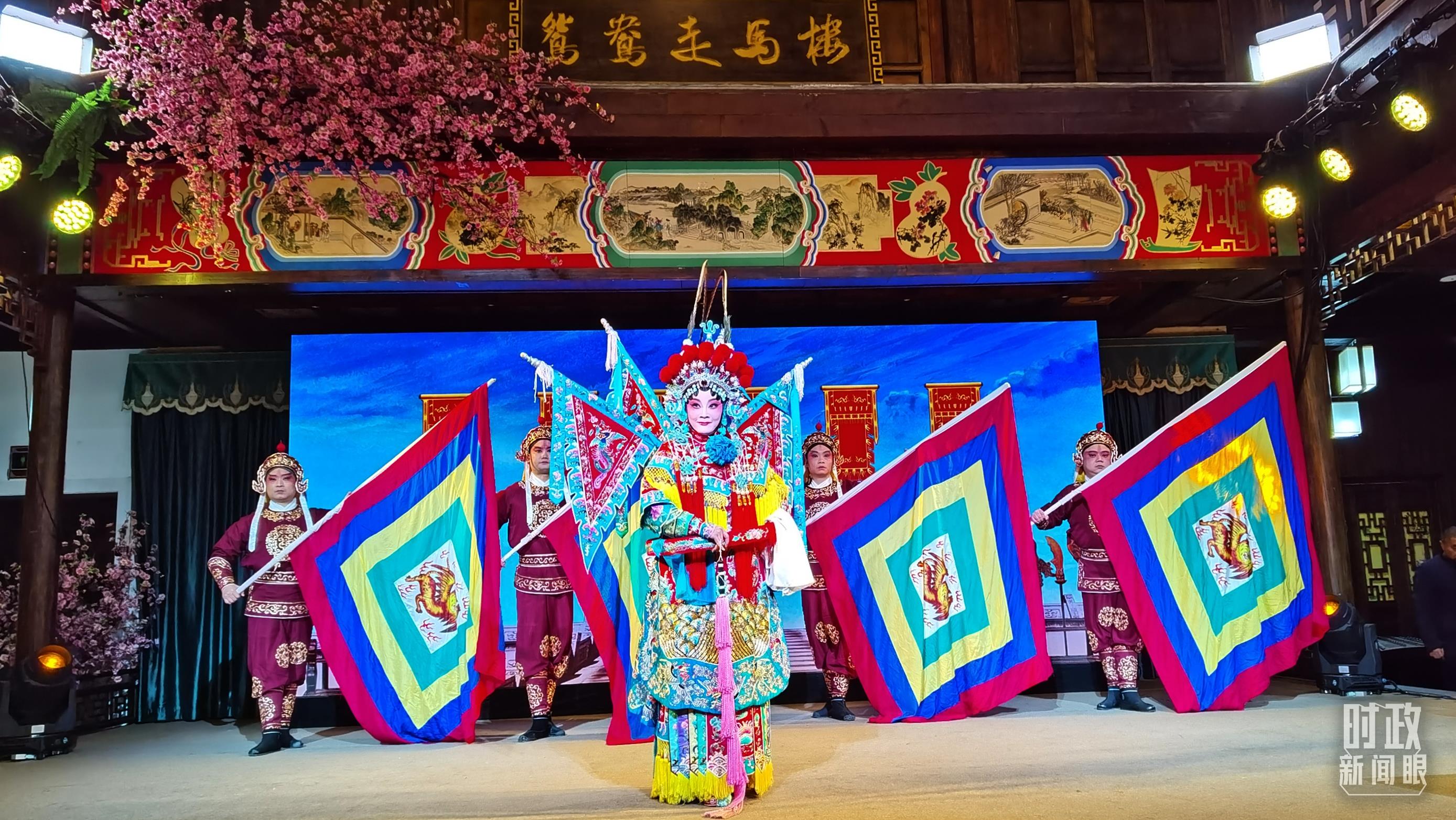 △常德河街鴛鴦走馬樓內(nèi)的常德高腔、常德木雕等非遺展示。(總臺央視記者郭鴻、央廣記者潘毅拍攝)