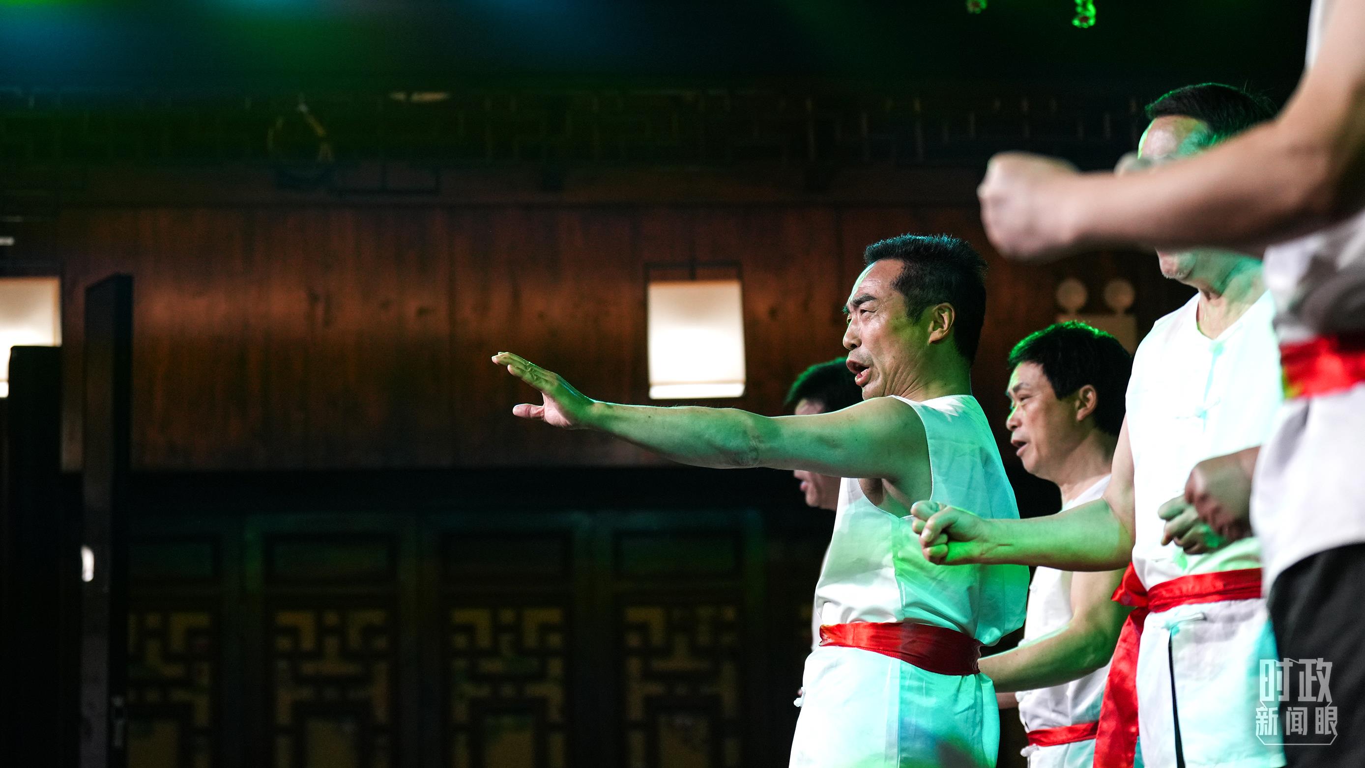 △常德河街,鴛鴦走馬樓上演常德高腔《穆桂英掛帥》和澧水船工號(hào)子。(總臺(tái)央視記者許永松、國(guó)廣記者李晉拍攝)