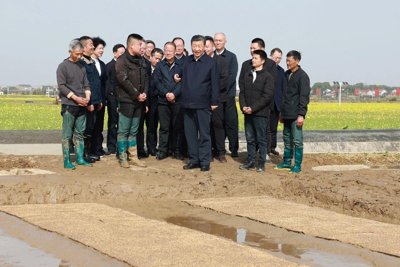 △2024年3月19日,習(xí)近平總書記在湖南常德鼎城區(qū)謝家鋪鎮(zhèn)港中坪村,察看秧苗培育和春耕備耕進(jìn)展。